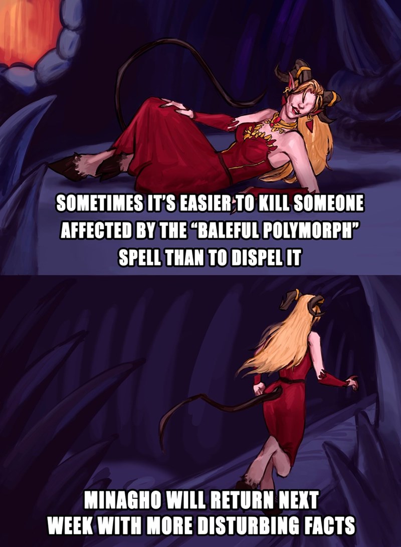 “Sometimes it’s easier to kill someone affected by the Baleful Polymorph spell than to dispel it!”