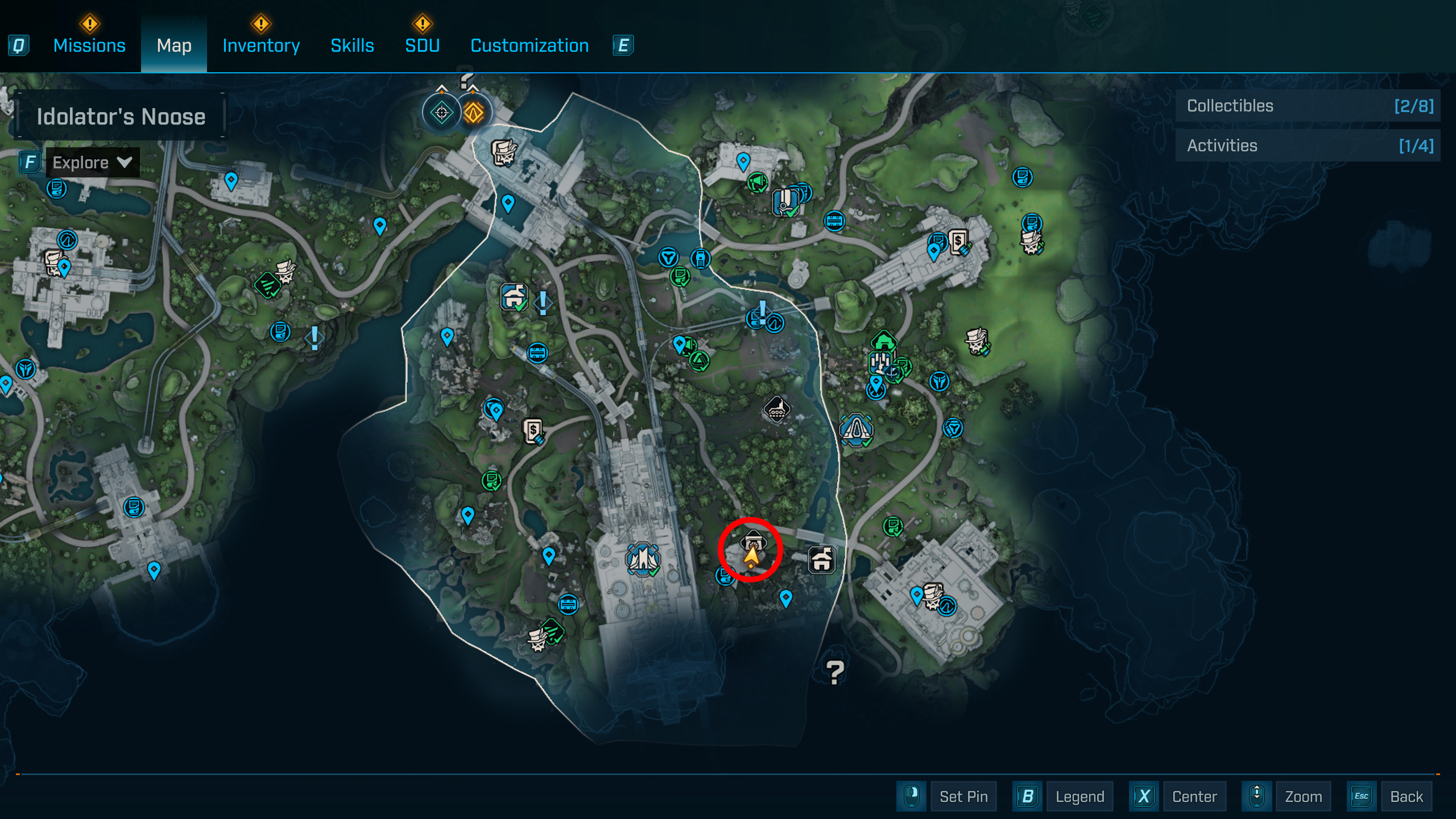 Borderlands 4 Complex Root location: A map with a red circle showing the location of the Tipping Point Order bunker in the Fadefields.