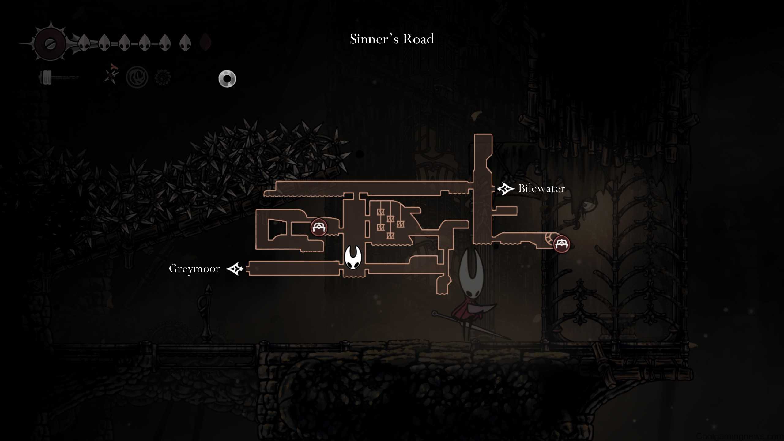 For this first step, you’ll have to head to Sinner’s Road via Greymoor. The entrance to this area is directly above the Halfway House—you’ll want to climb the big building on the left of Greymoor with the Chapel of the Reaper at the top, and then head right along the upper walkway to unlock the lift back down to the Halfway House. Now, keep climbing and going right and you’ll find Sinner’s Road. Head right through the initial chamber into the main shaft, where you’ll find the Green Prince just up and to your left (though you have to drop down to reach him).